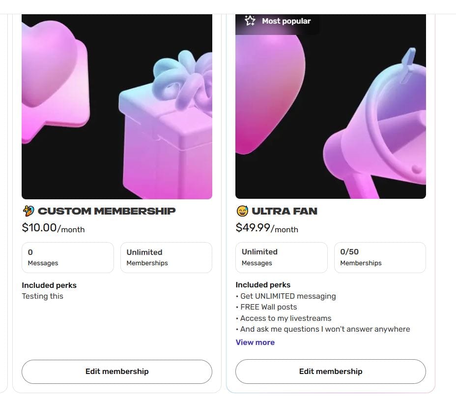 - Limited Memberships: Creators can cap the number of fans who can purchase a specific membership tier, driving exclusivity and creating FOMO.