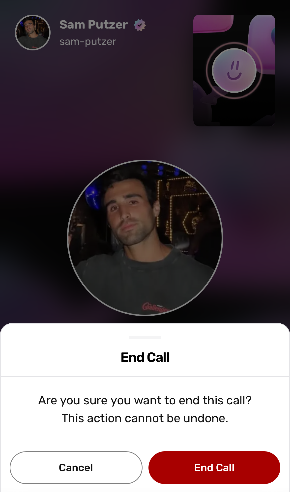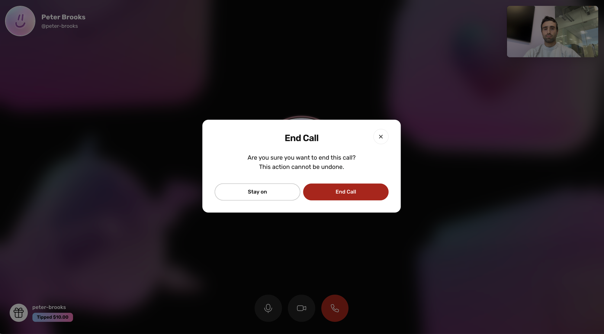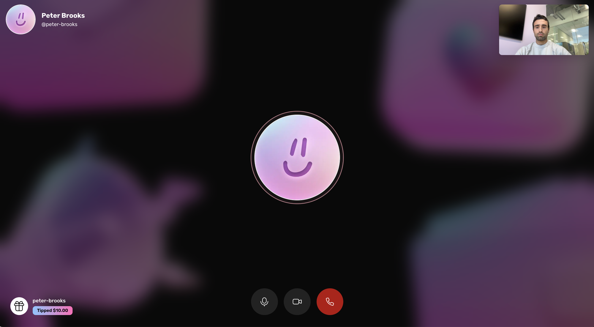 - Once connected, you can tip, mute/unmute, and end the call when finished.