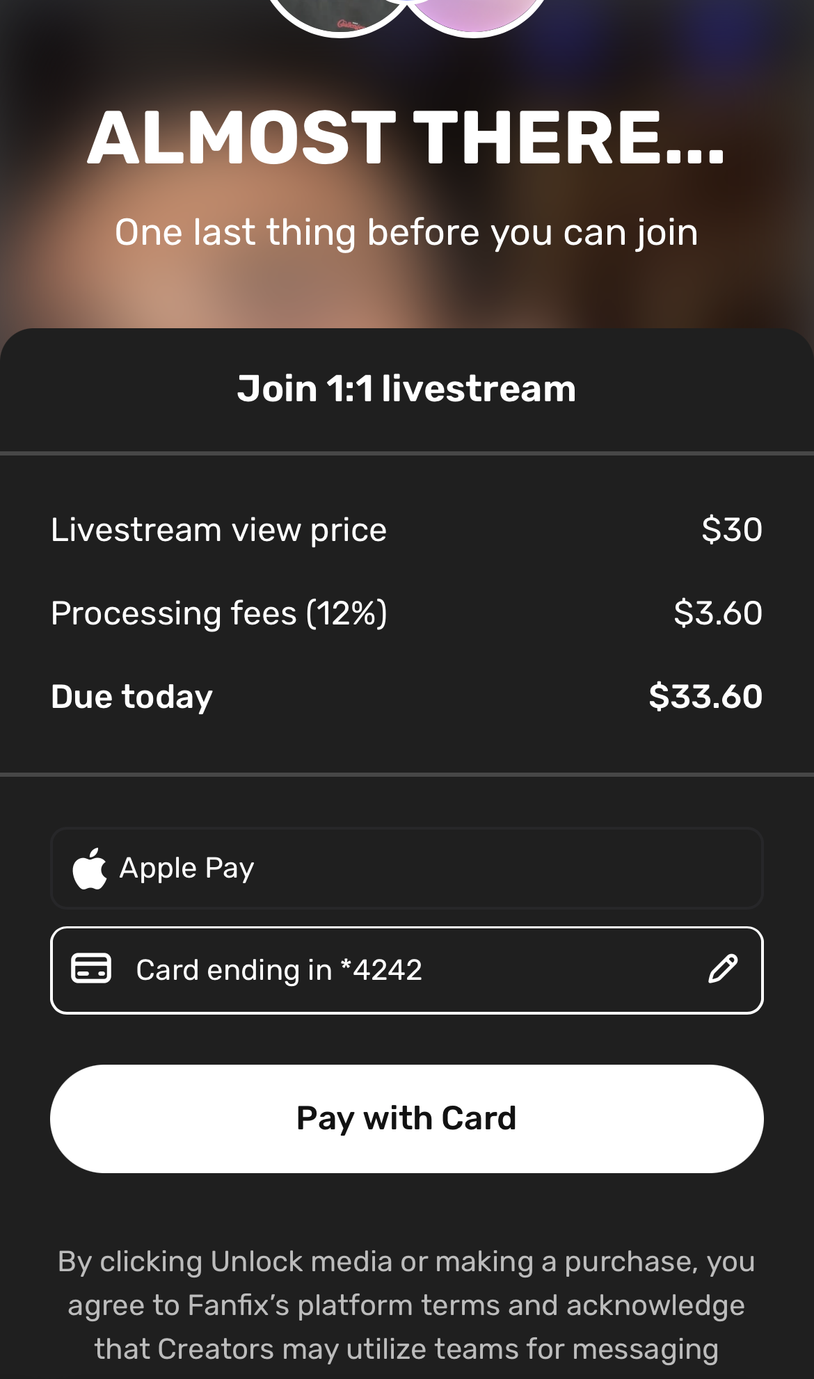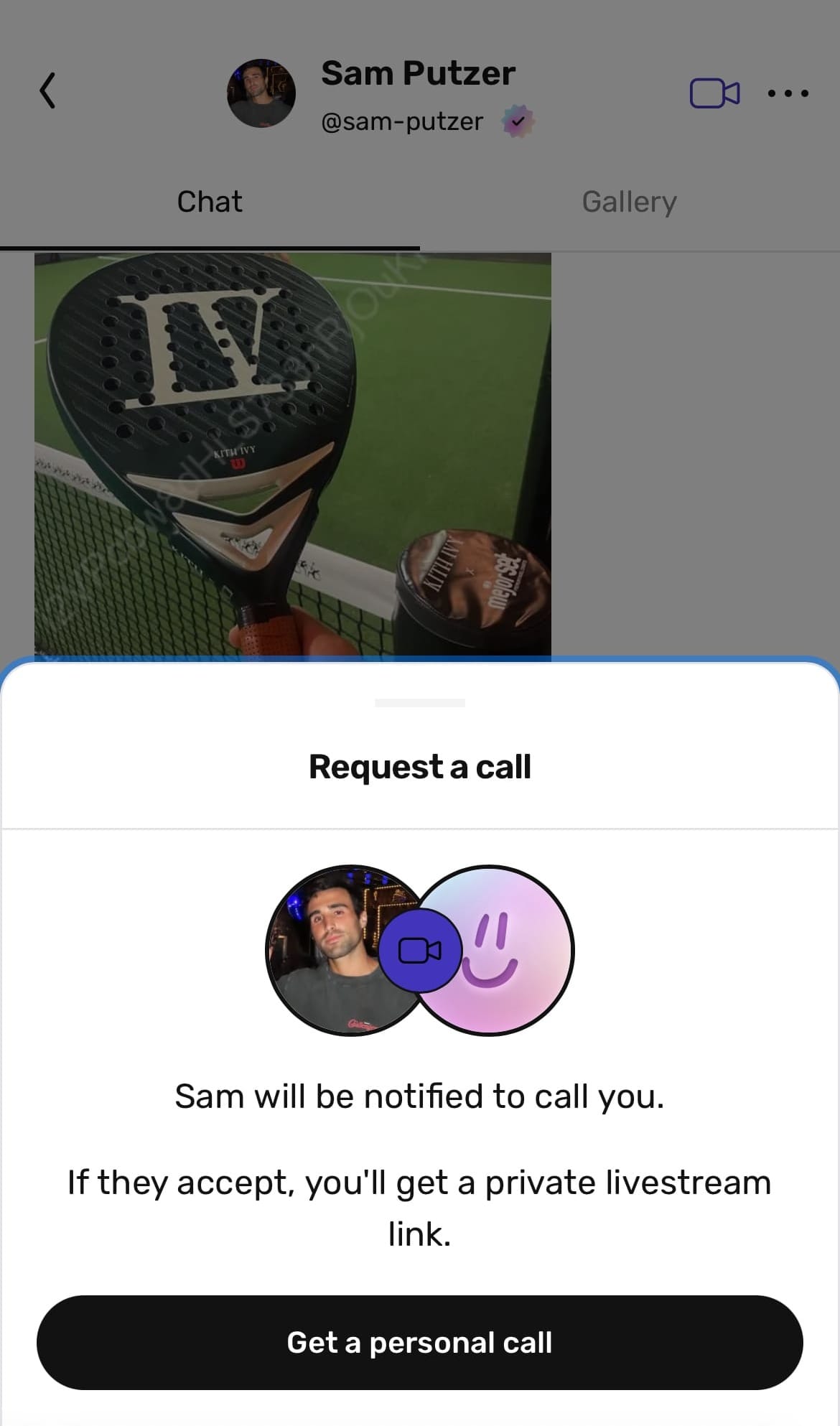 Requesting a 1:1 livestream is simple and seamless — giving you a direct, real-time way to connect with your favorite creators.