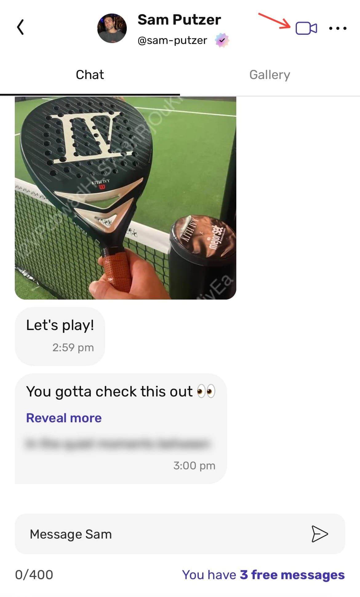 - Go to your conversation with the creator you want to connect with and tap the video camera icon (top-right).