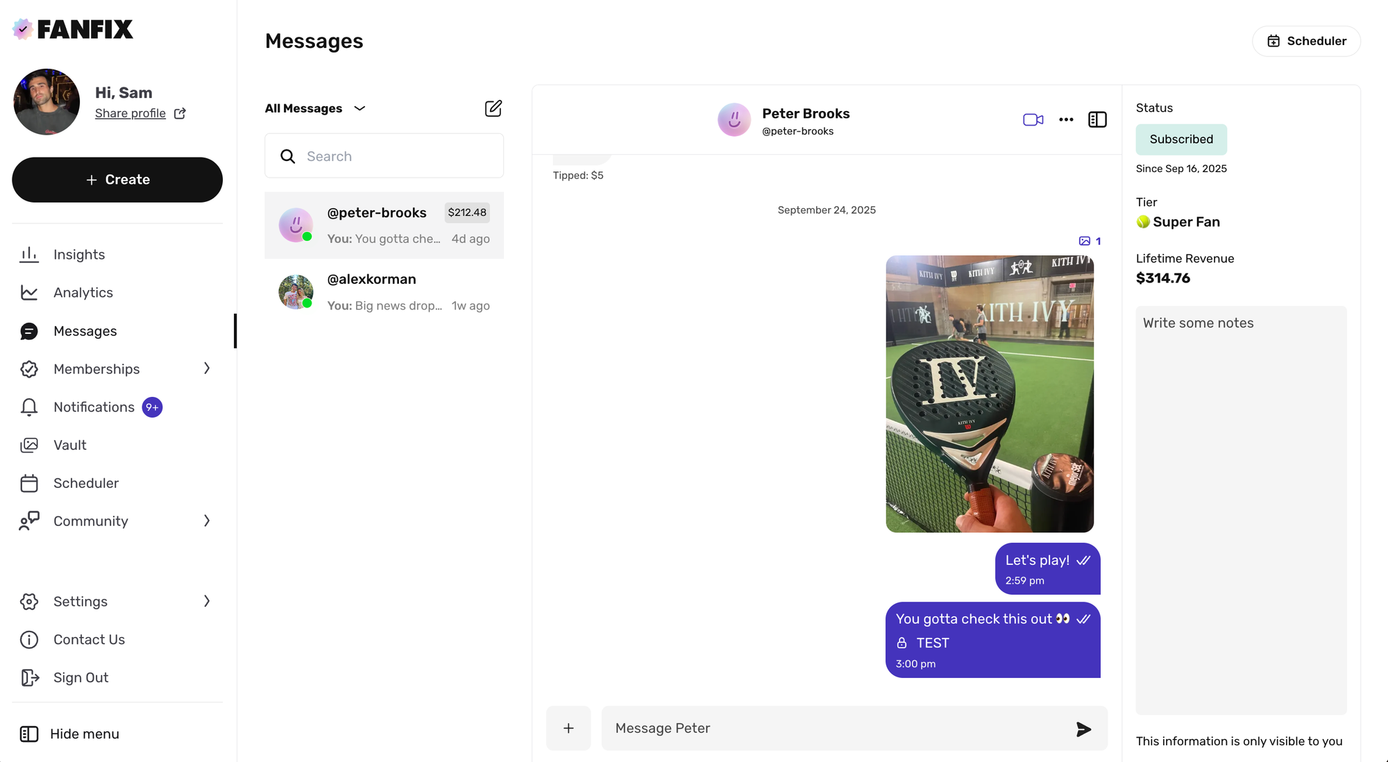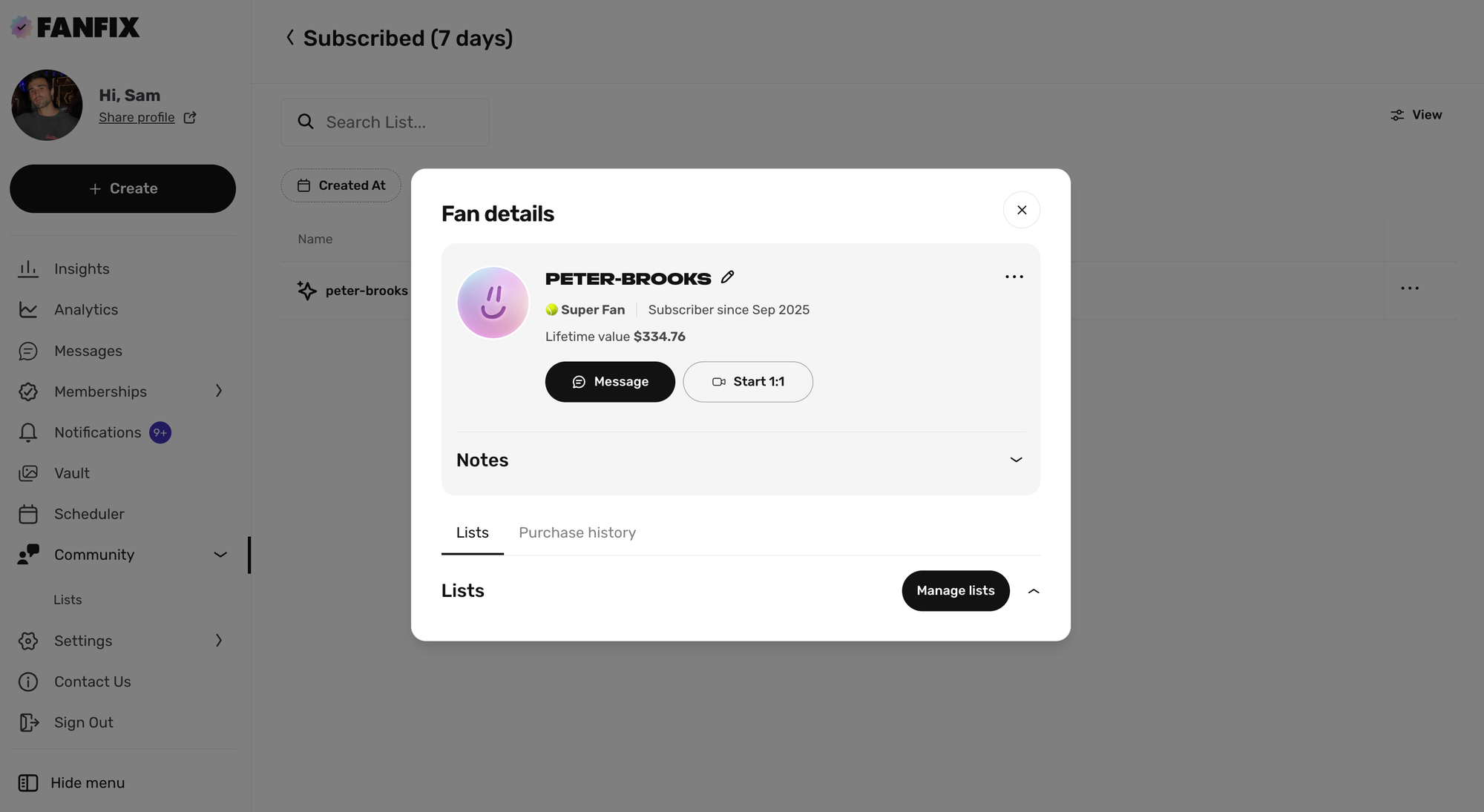 - Go to Messages and open a fan’s thread, or go to Community → Subscribers and select a fan.