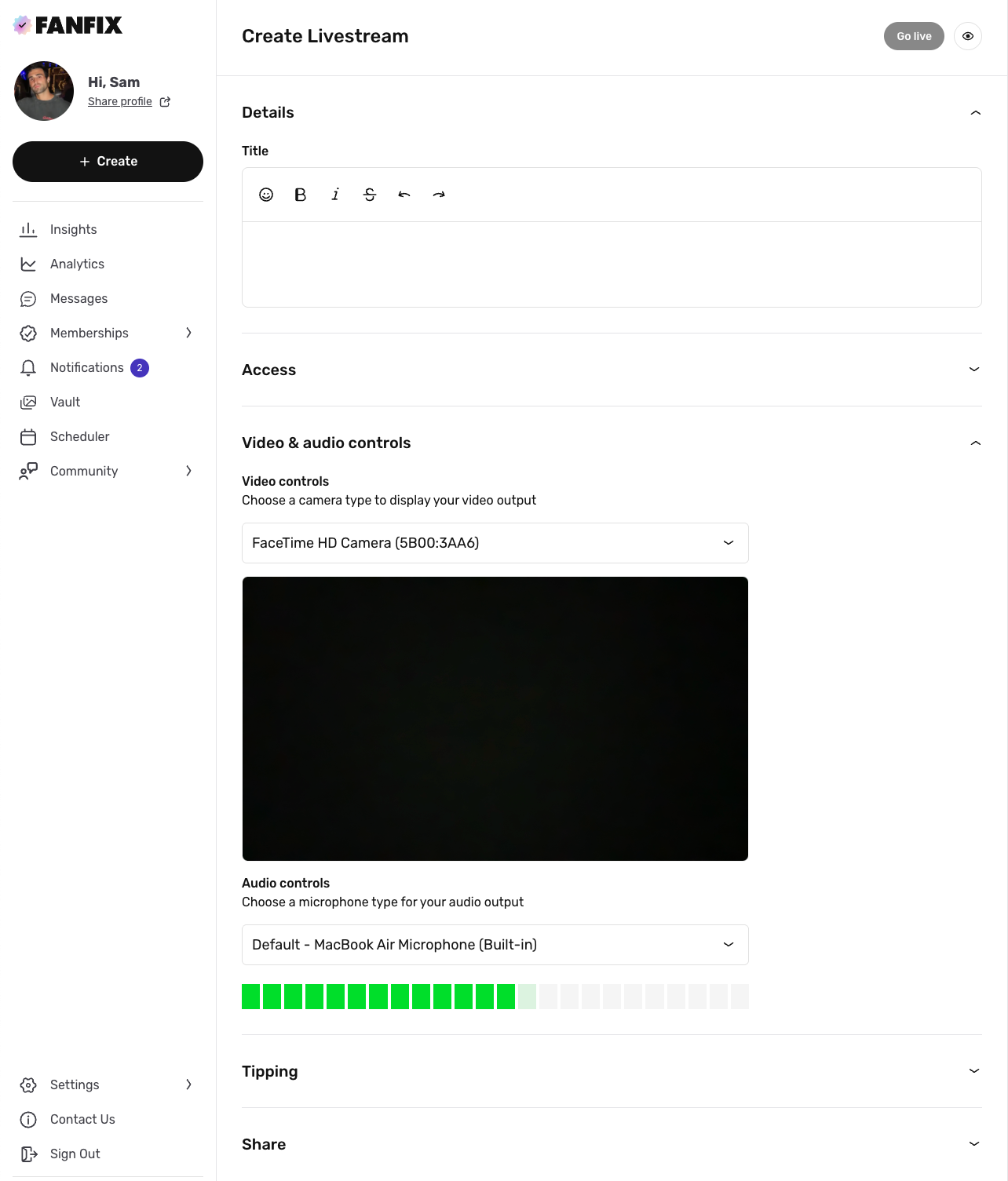 This update makes it easier to go live with higher quality and flexibility. Creators using multi-camera setups or professional gear can now switch devices without leaving Fanfix, creating a smoother and more customizable streaming experience.
