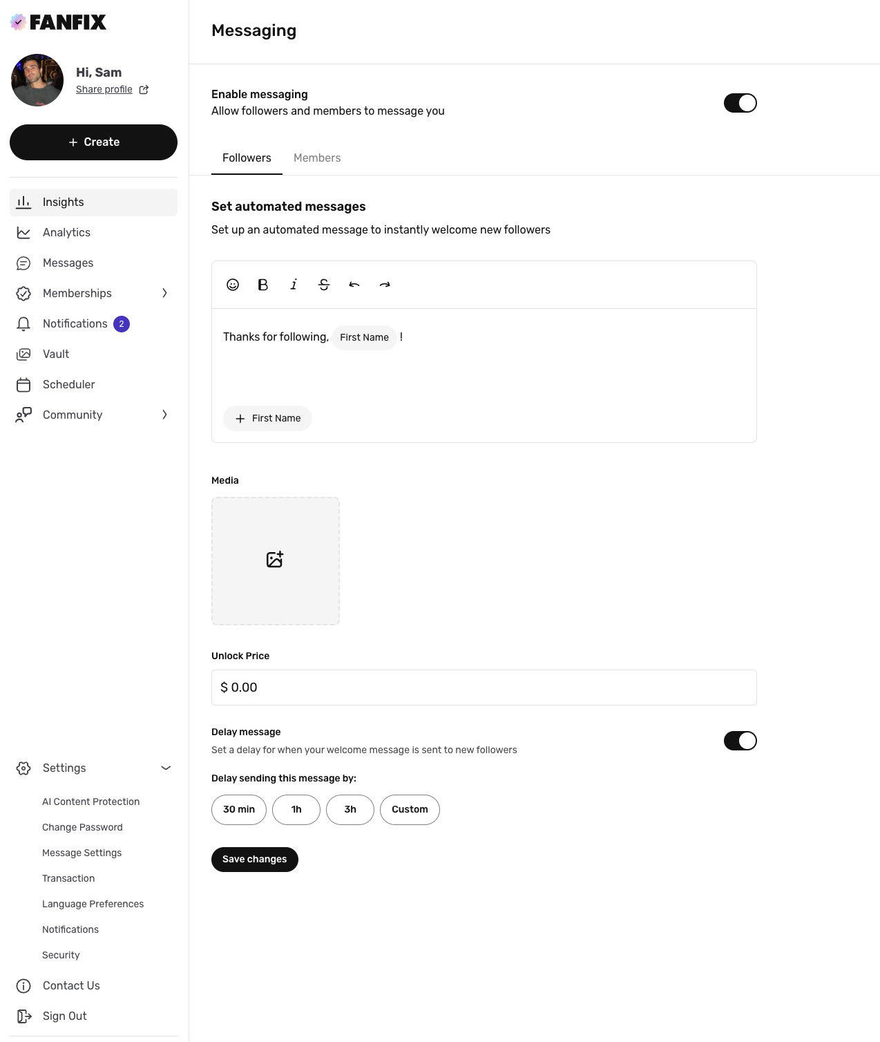 Instead of sending an instant message the moment someone subscribes, you can now give it a more natural gap — making your welcome feel more personal and less like an auto-reply. To update this setting, head to Settings → Message Settings → Delay Message.
