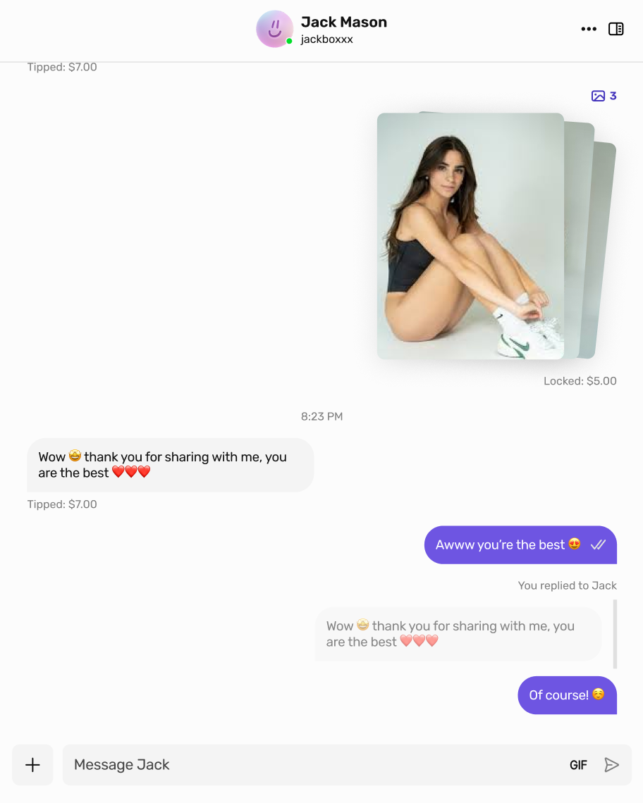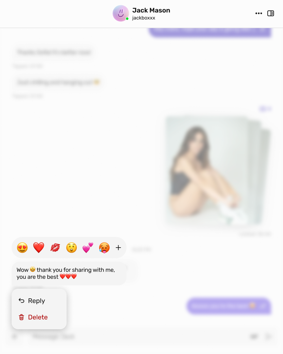 This makes conversations clearer and more organized, especially when chatting with multiple fans or responding to long messages. Replies display the original message preview, keeping context front and center.