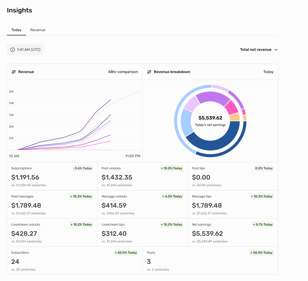 Previously, revenue in Insights could take 18 hours to fully reflect. With this update, your dashboard refreshes instantly.